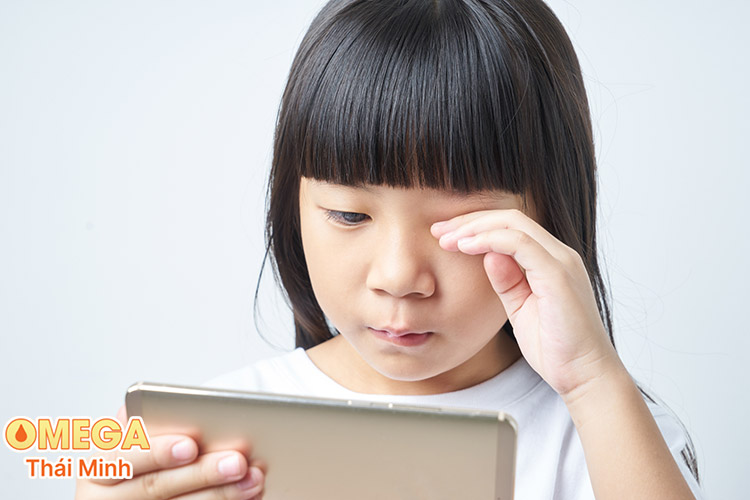 - Trẻ hay dụi mắt, nheo mắt, chớp mắt nhiều: Đây là phản xạ thường gặp khi mắt bị mỏi, khô hoặc phải điều tiết quá mức do nhìn màn hình lâu.