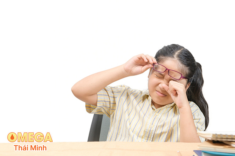 - Trẻ than mỏi, cay, nhức mắt, đau đầu nhẹ
