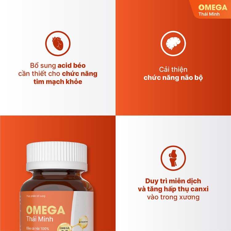 Việc bổ sung Omega chất lượng cao giúp hỗ trợ cân bằng các hoạt động sinh lý của cơ thể, góp phần chăm sóc tim mạch, não bộ và sức khỏe làn da.