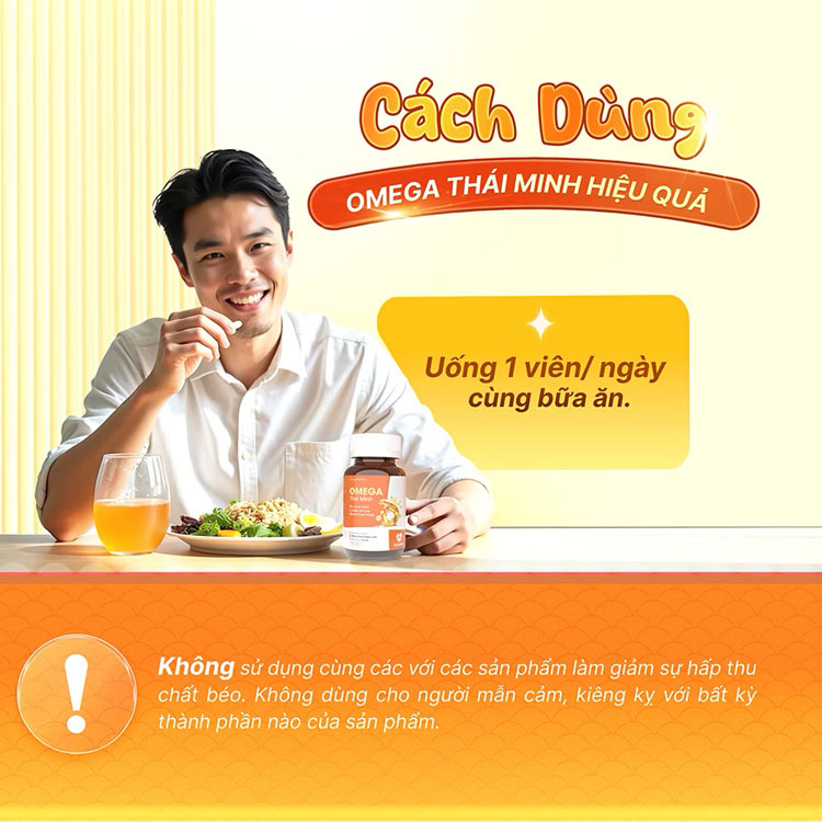 - Lưu ý: Không sử dụng cùng với các sản phẩm làm giảm sự hấp thu nhóm chất béo.